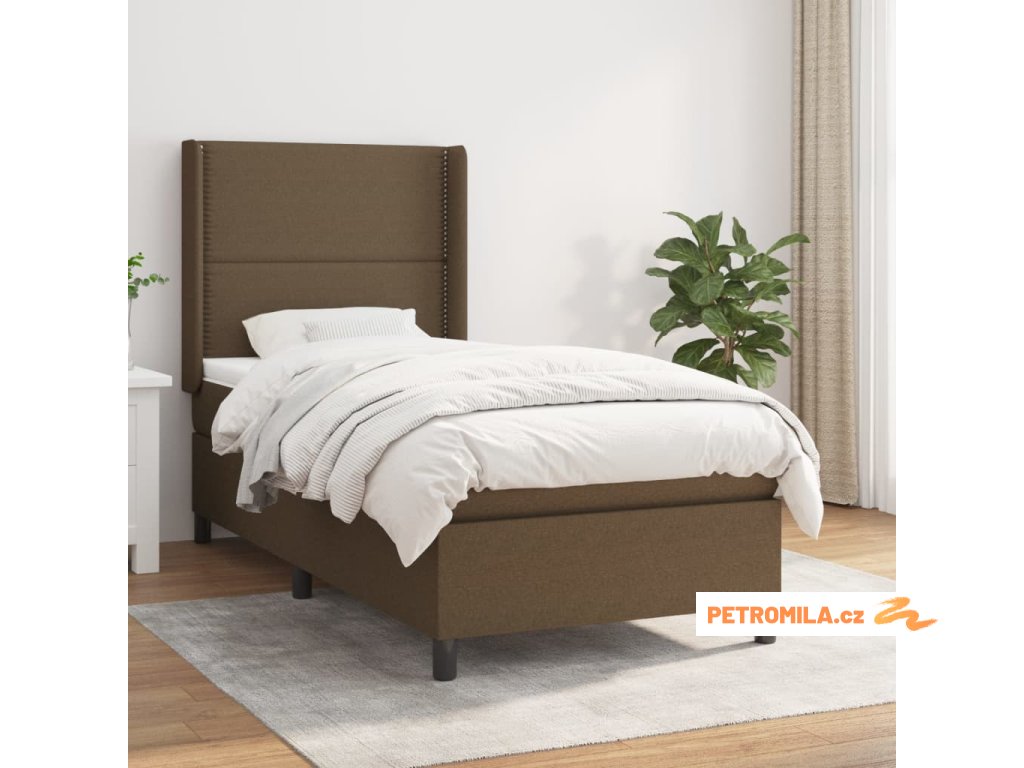 Box spring postel s matrací tmavě hnědá 100 x 200 cm textil