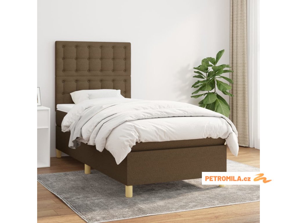 Box spring postel s matrací tmavě hnědá 100 x 200 cm textil