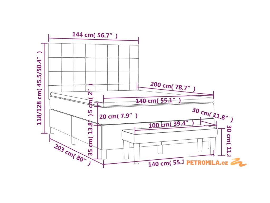 - Rozměry: 140 x 200 x 20 cm (Š x D x V)