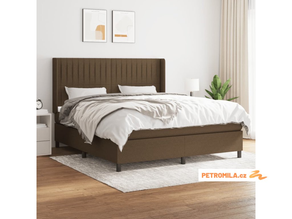 Box spring postel s matrací tmavě hnědá 160x200 cm textil