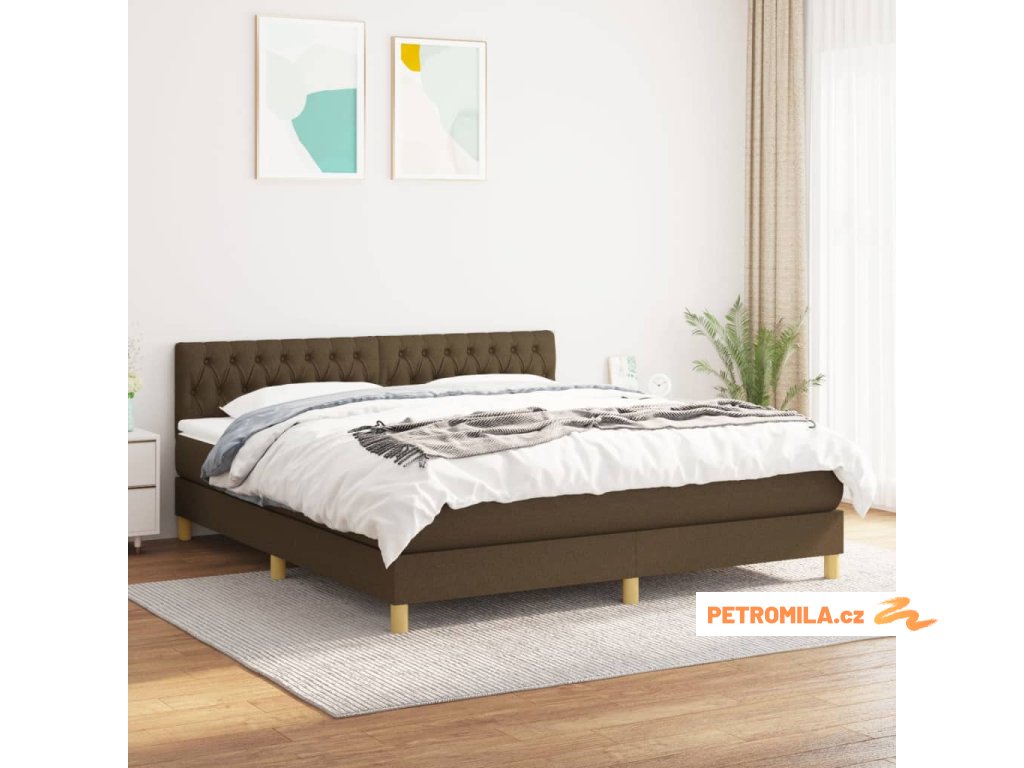 Box spring postel s matrací tmavě hnědá 180x200 cm textil