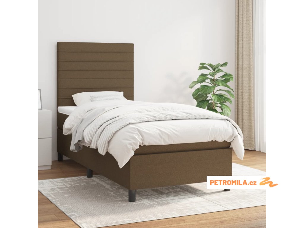 Box spring postel s matrací tmavě hnědá 90x190 cm textil