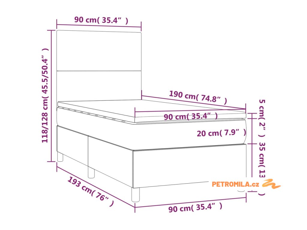 - Rozměry: 90 x 190 x 20 cm (Š x D x V)