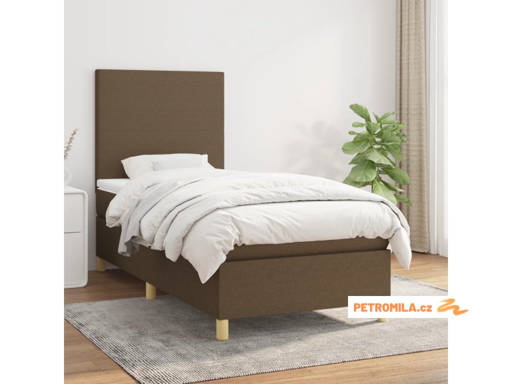 Box spring postel s matrací tmavě hnědá 90x190 cm textil