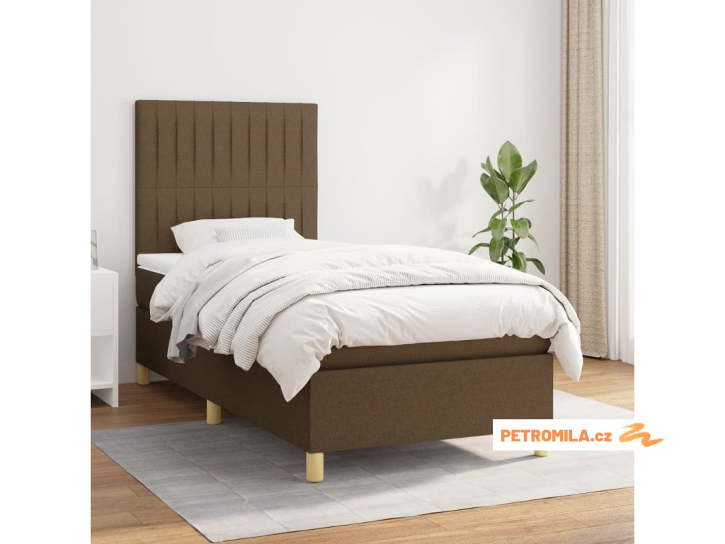Box spring postel s matrací tmavě hnědá 90x190 cm textil