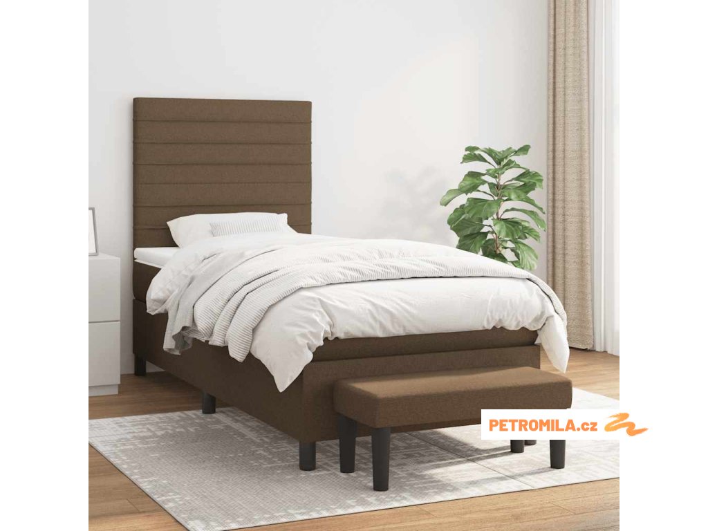 Box spring postel s matrací tmavě hnědá 90x200 cm textil