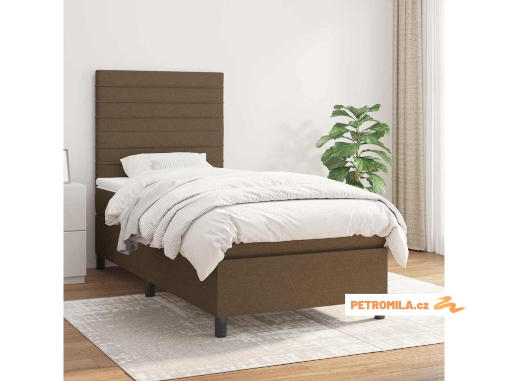 Box spring postel s matrací tmavě hnědá 90x200 cm textil