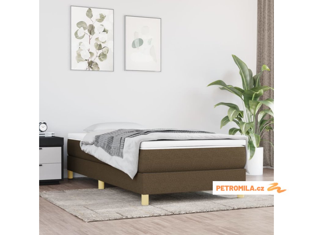 Box spring postel s matrací tmavě hnědá 90x200 cm textil