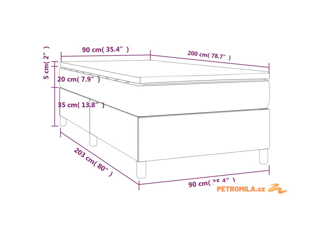 - Rozměry: 90 x 200 x 20 cm (Š x D x V)