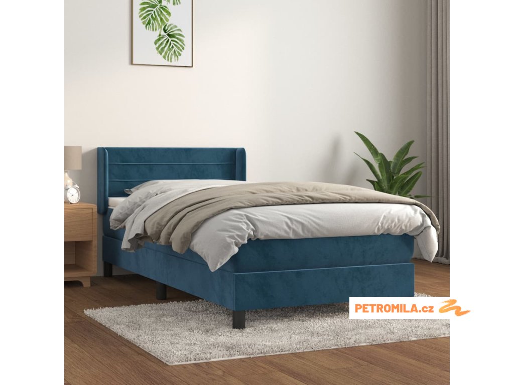Box spring postel s matrací tmavě modrá 100x200 cm samet