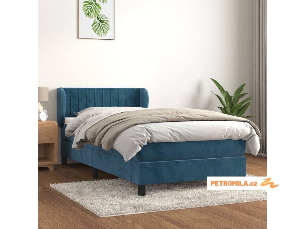 Box spring postel s matrací tmavě modrá 100x200 cm samet