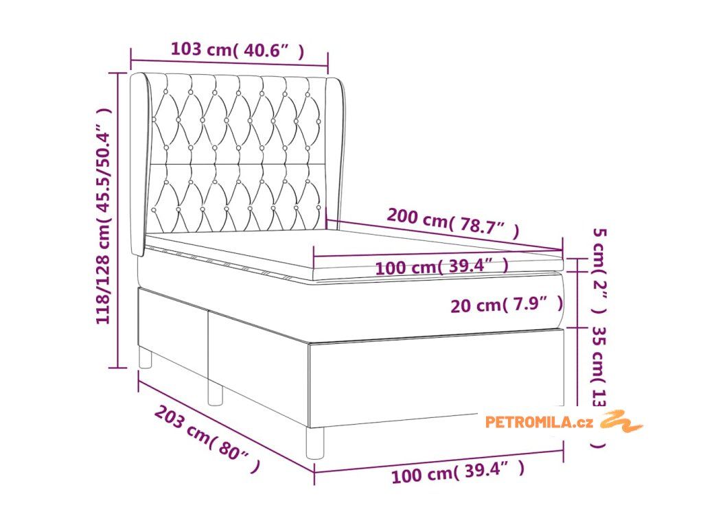 • Rozměry: 203 x 103 x 118/128 cm (D x Š x V)