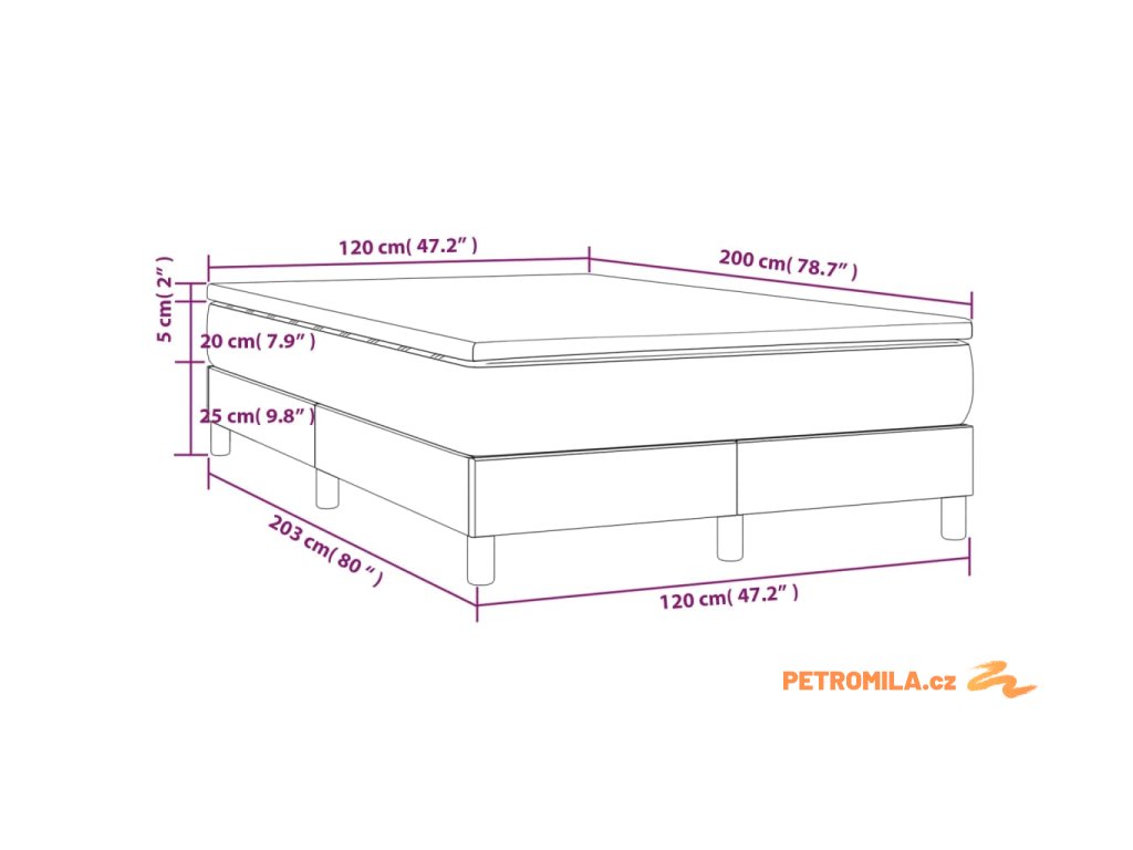 - Rozměry: 120 x 200 x 20 cm (Š x D x V)