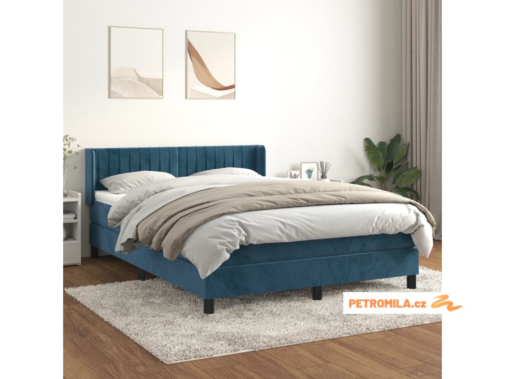 Box spring postel s matrací tmavě modrá 140x190 cm samet