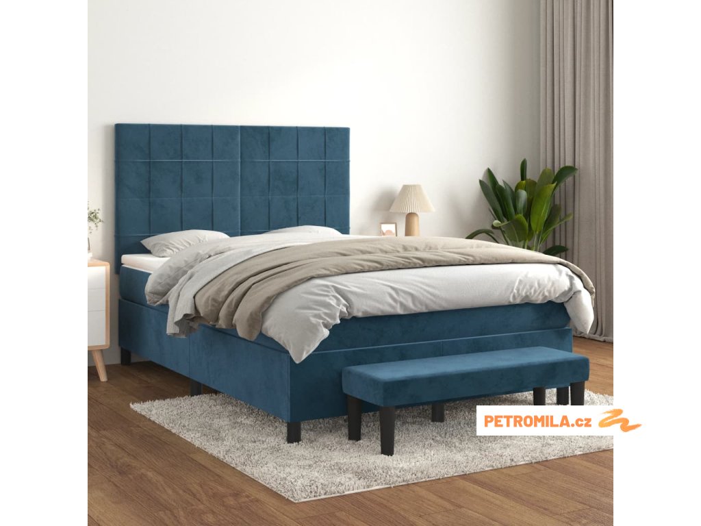 Box spring postel s matrací tmavě modrá 140x200 cm samet
