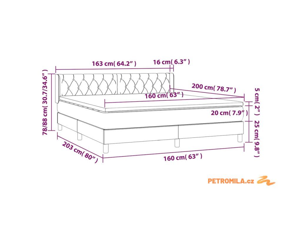 - Rozměry: 203 x 163 x 78/88 cm (D x Š x V)