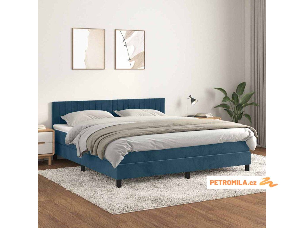 Box spring postel s matrací tmavě modrá 180x200 cm samet