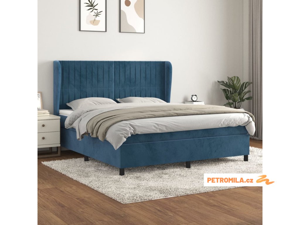 Box spring postel s matrací tmavě modrá 180x200 cm samet