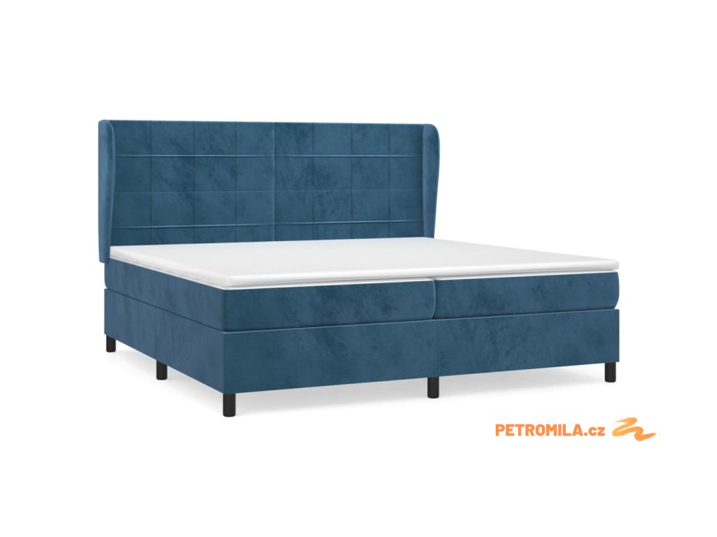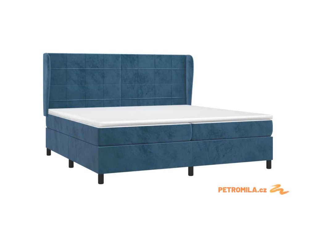 Box spring postel s matrací tmavě modrá 200x200 cm samet