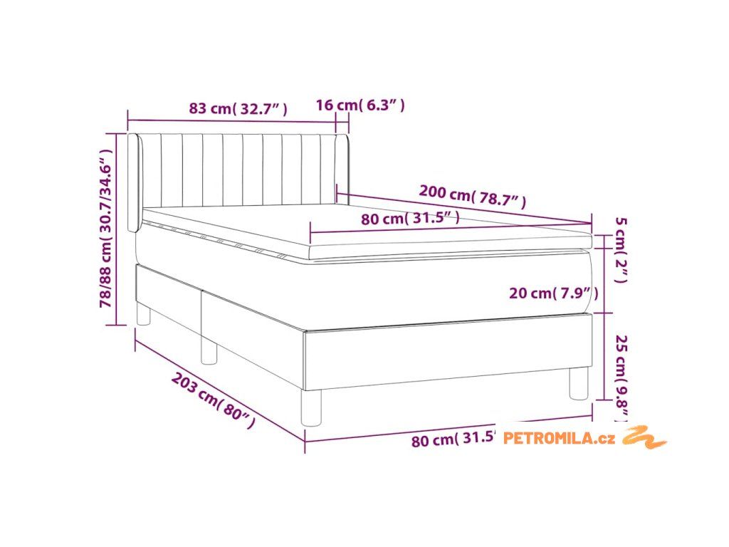- Rozměry: 80 x 200 x 20 cm (Š x D x V)