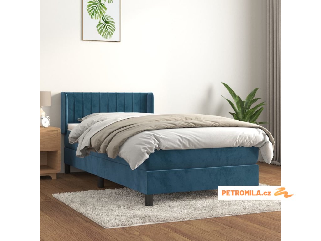 Box spring postel s matrací tmavě modrá 80 x 200 cm samet