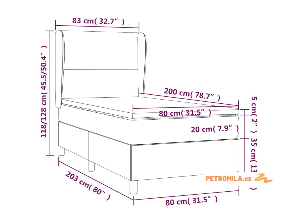 - Rozměry: 203 x 83 x 118/128 cm (D x Š x V)