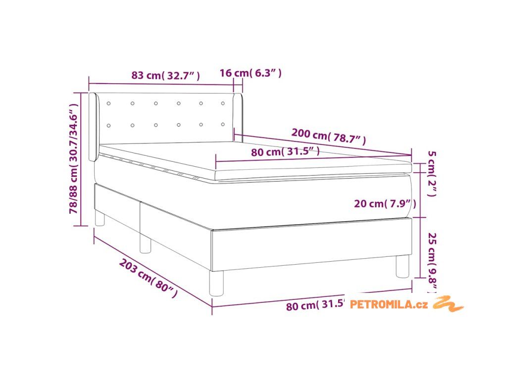 - Rozměry: 80 x 200 x 20 cm (Š x D x V)