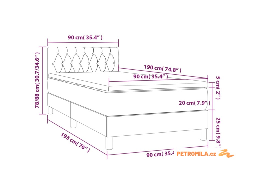 - Rozměry: 90 x 190 x 20 cm (Š x D x V)