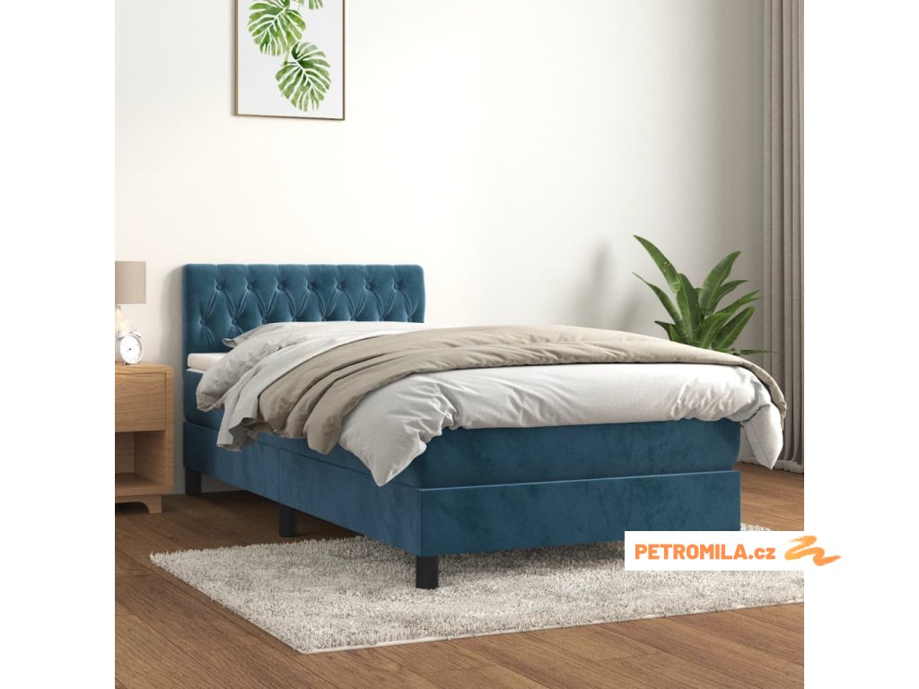 Box spring postel s matrací tmavě modrá 90x190 cm samet