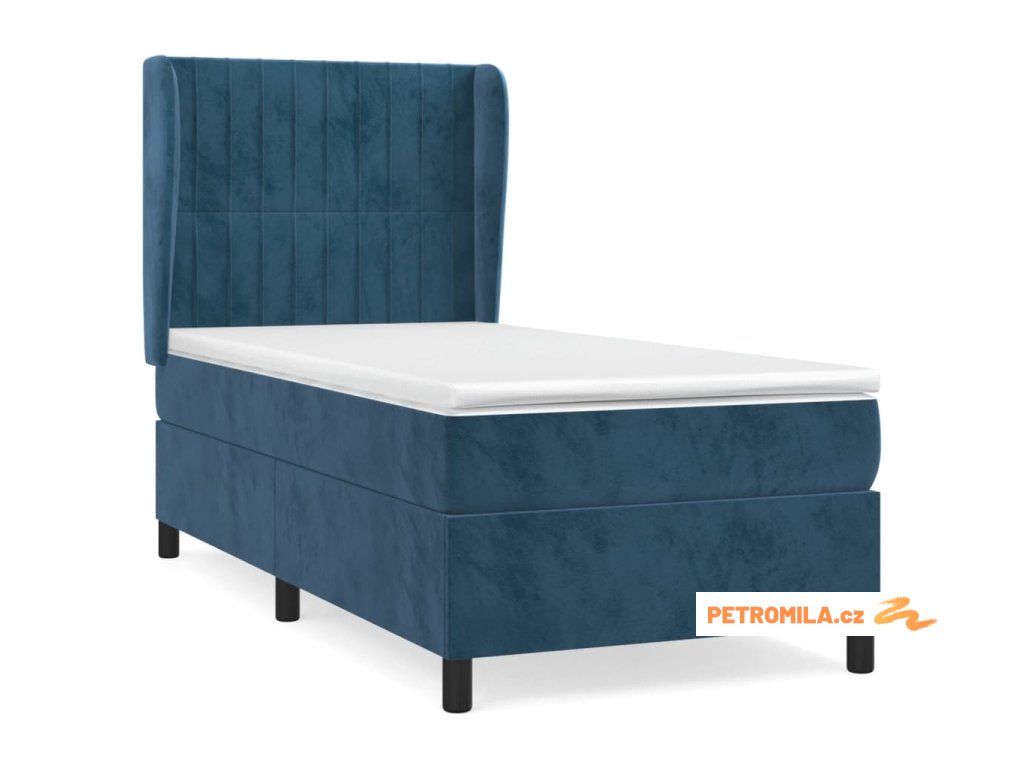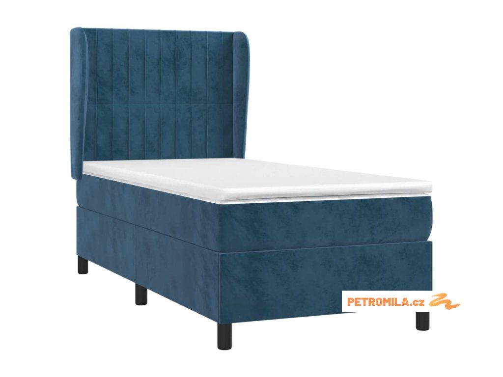 Box spring postel s matrací tmavě modrá 90x190 cm samet