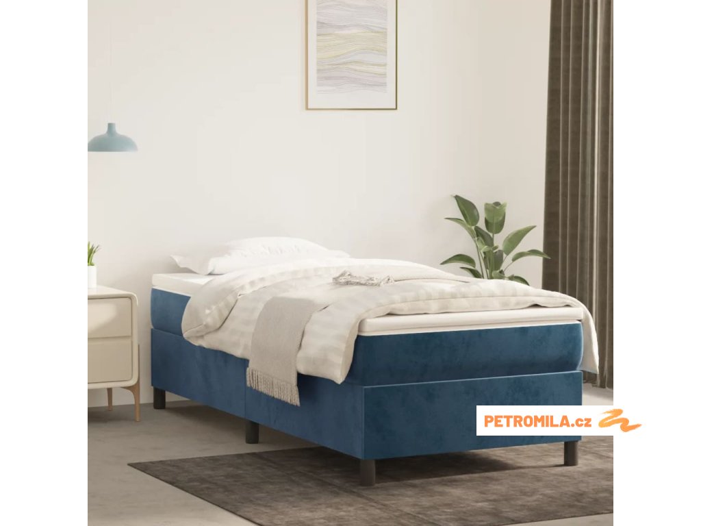 Box spring postel s matrací tmavě modrá 90x200 cm samet