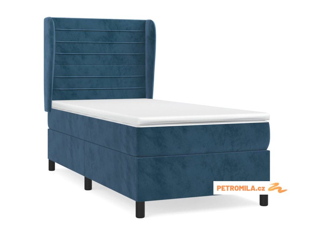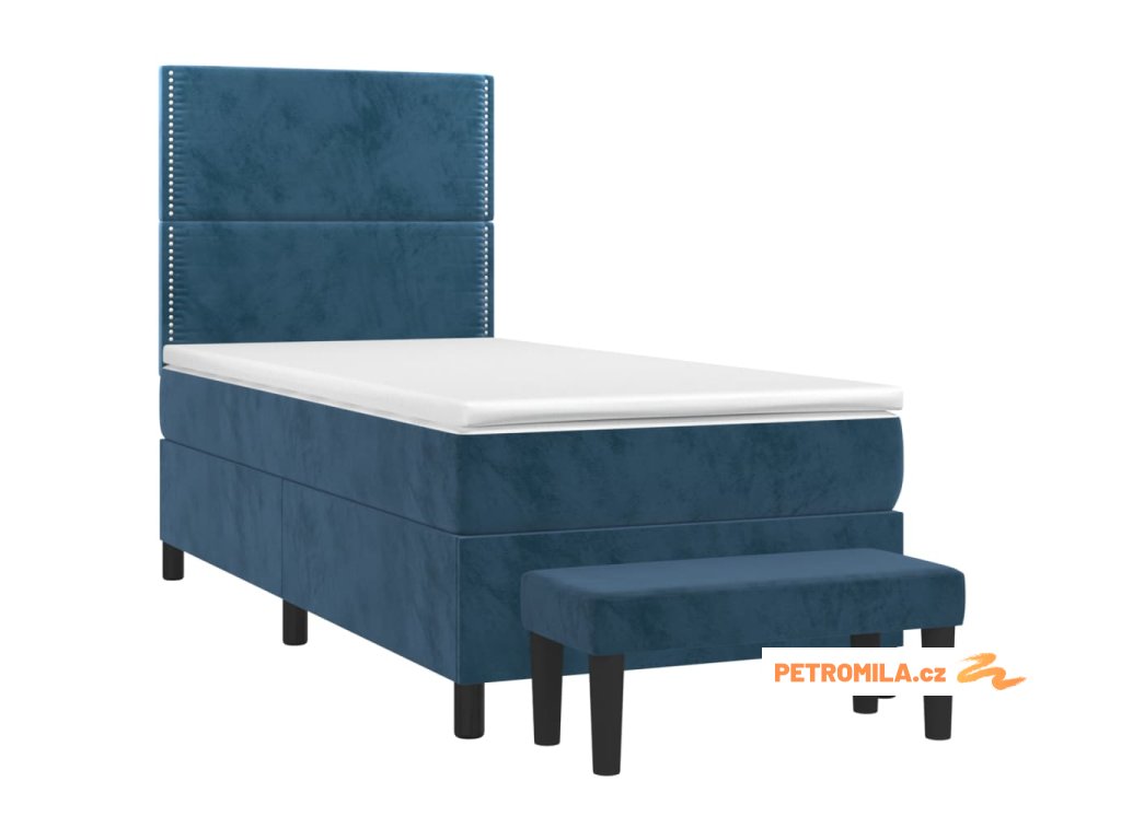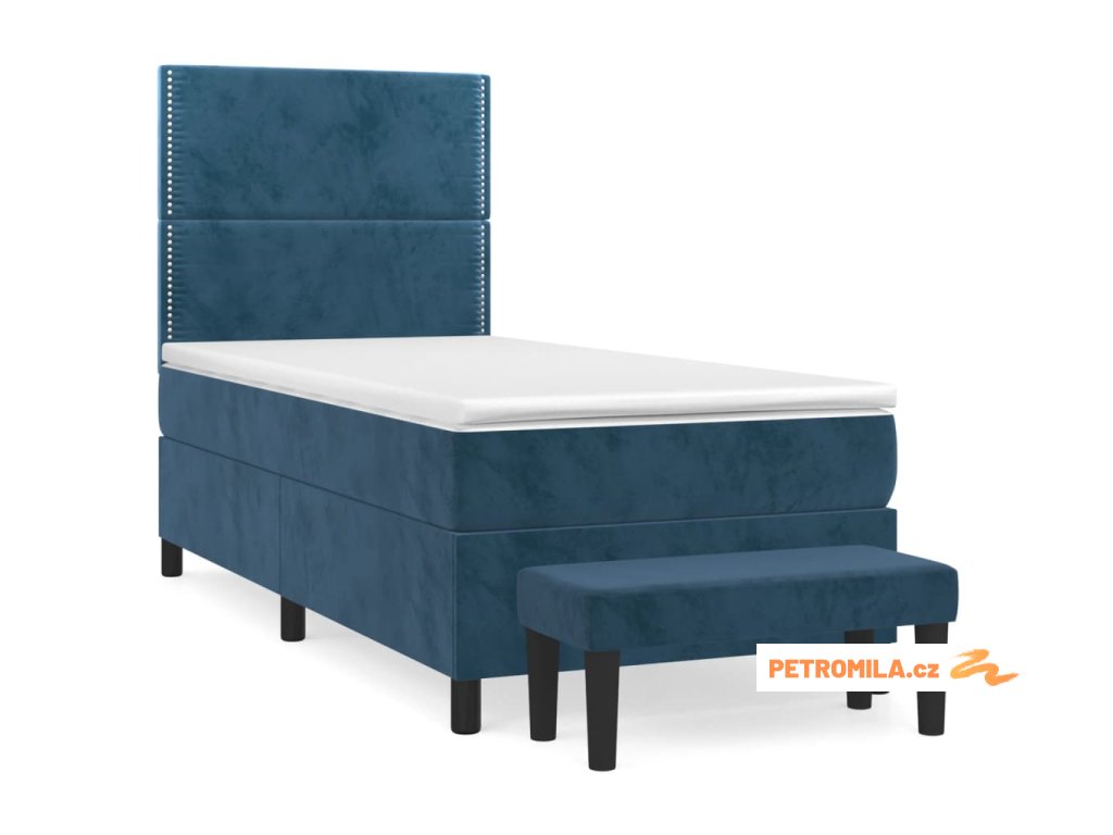 Box spring postel s matrací tmavě modrá 90x200 cm samet