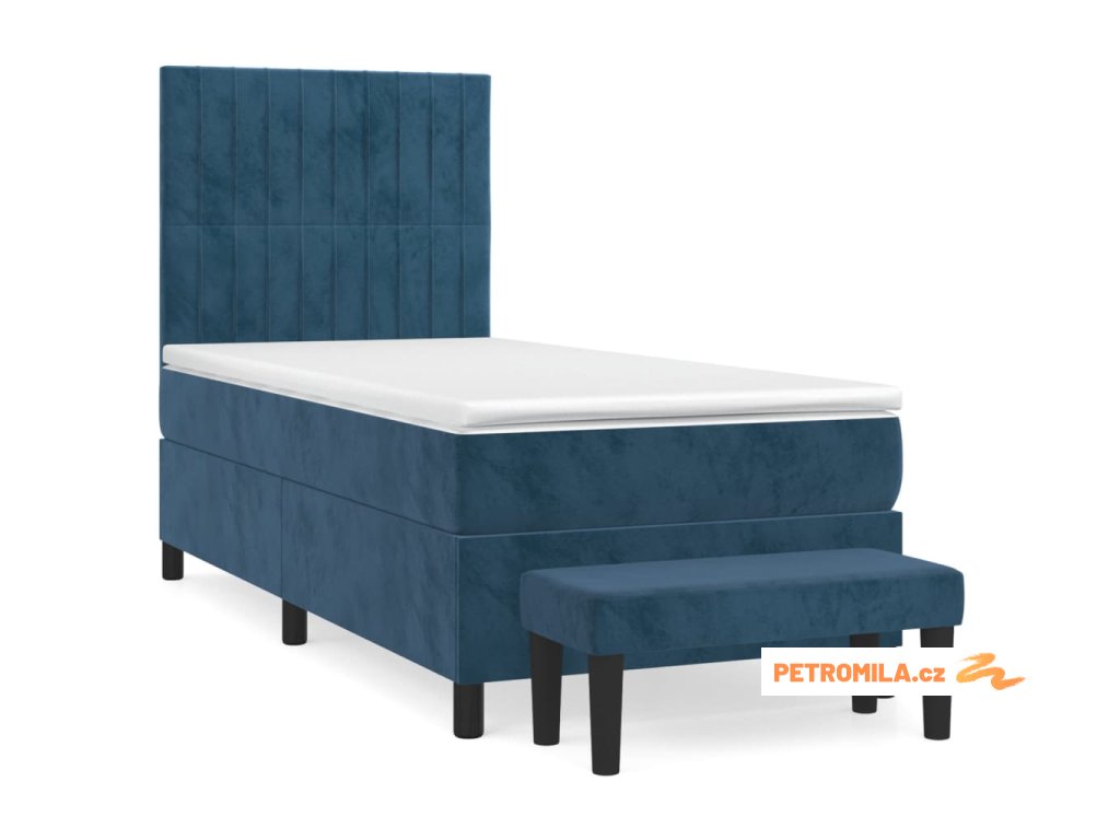 Box spring postel s matrací tmavě modrá 90x200 cm samet