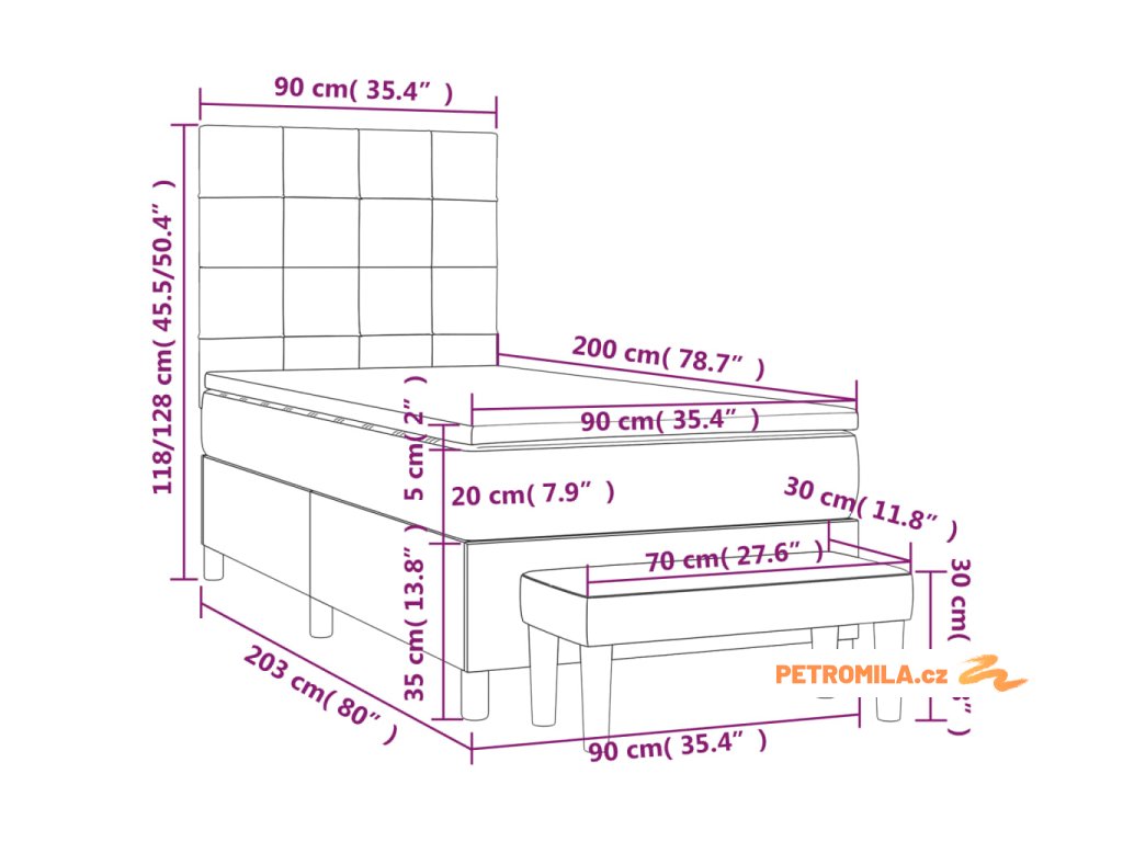 - Rozměry: 90 x 200 x 20 cm (Š x D x V)