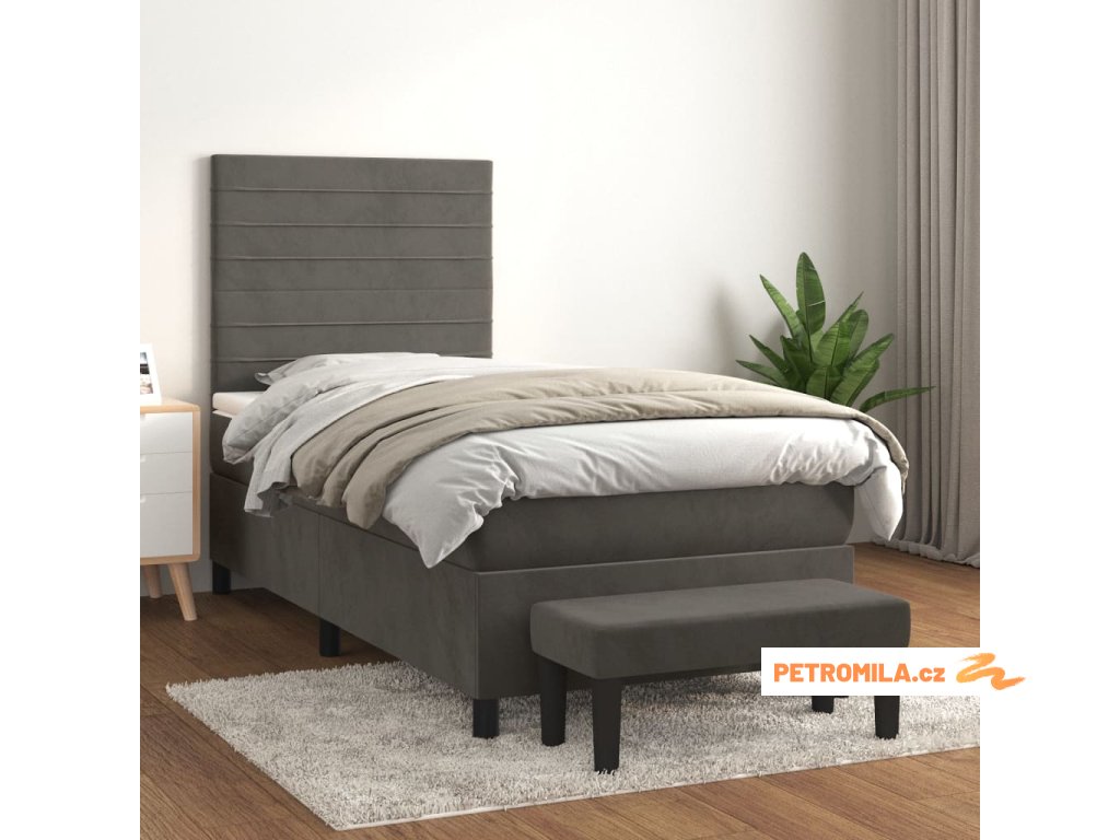Box spring postel s matrací tmavě šedá 100x200 cm samet