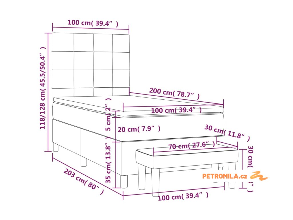 Box spring postel s matrací tmavě šedá 100x200 cm samet