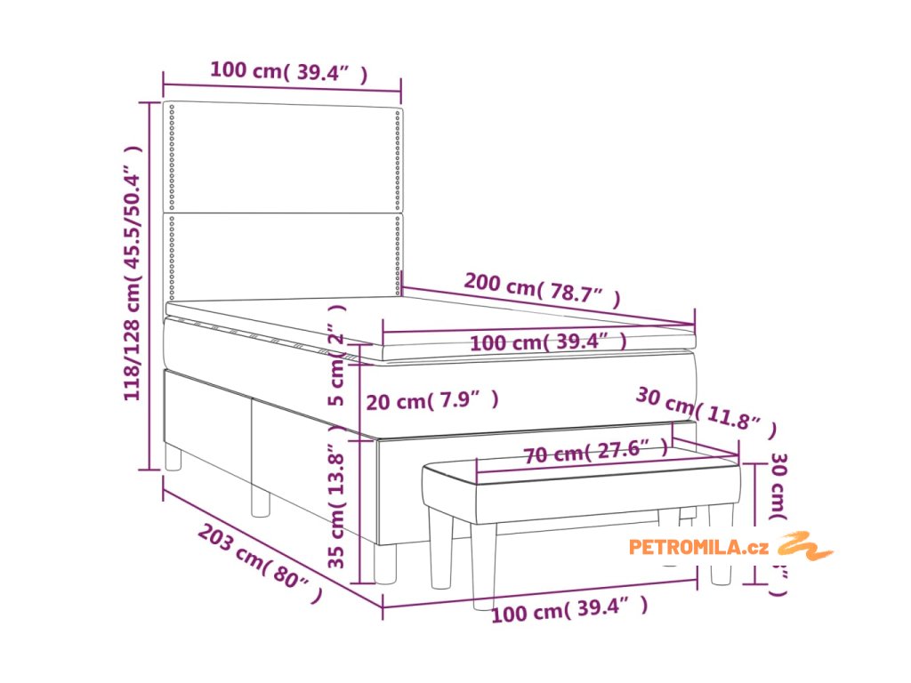 Box spring postel s matrací tmavě šedá 100x200 cm samet