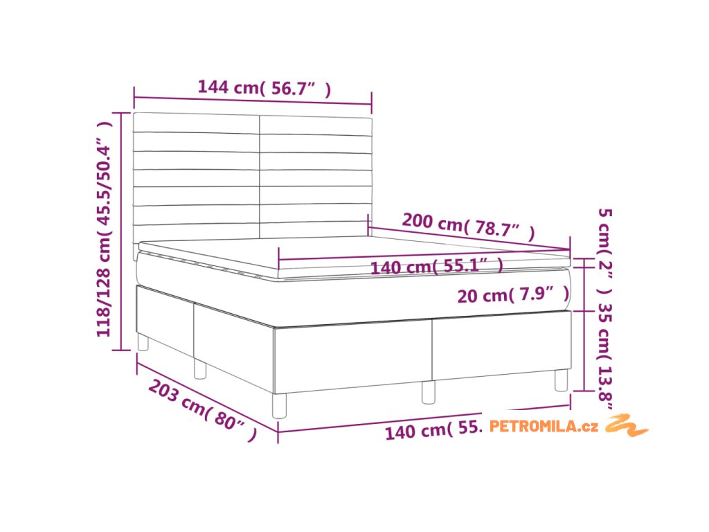 - Rozměry: 140 x 200 x 20 cm (Š x D x V)