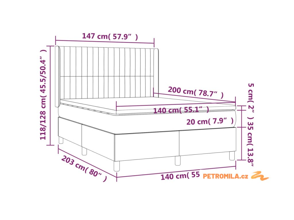 • Rozměry: 140 x 200 x 20 cm (Š x D x V)