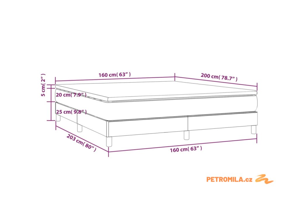 - Rozměry: 203 x 160 x 25 cm (D x Š x V)