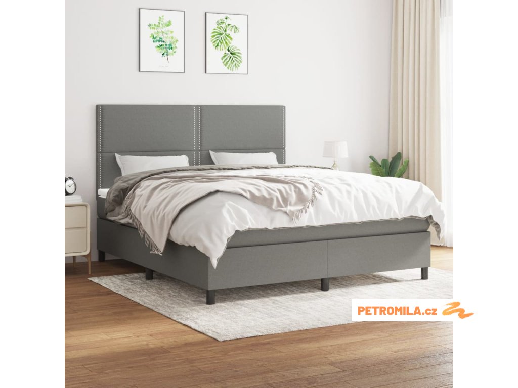 Box spring postel s matrací tmavě šedá 180x200 cm textil