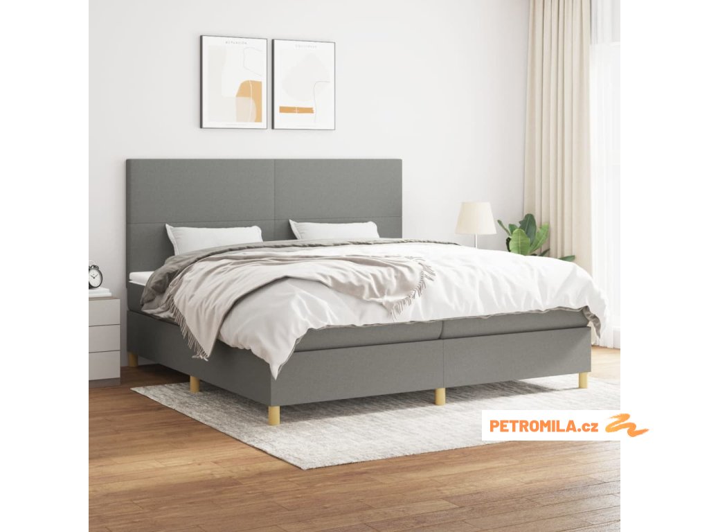 Box spring postel s matrací tmavě šedá 200x200 cm textil