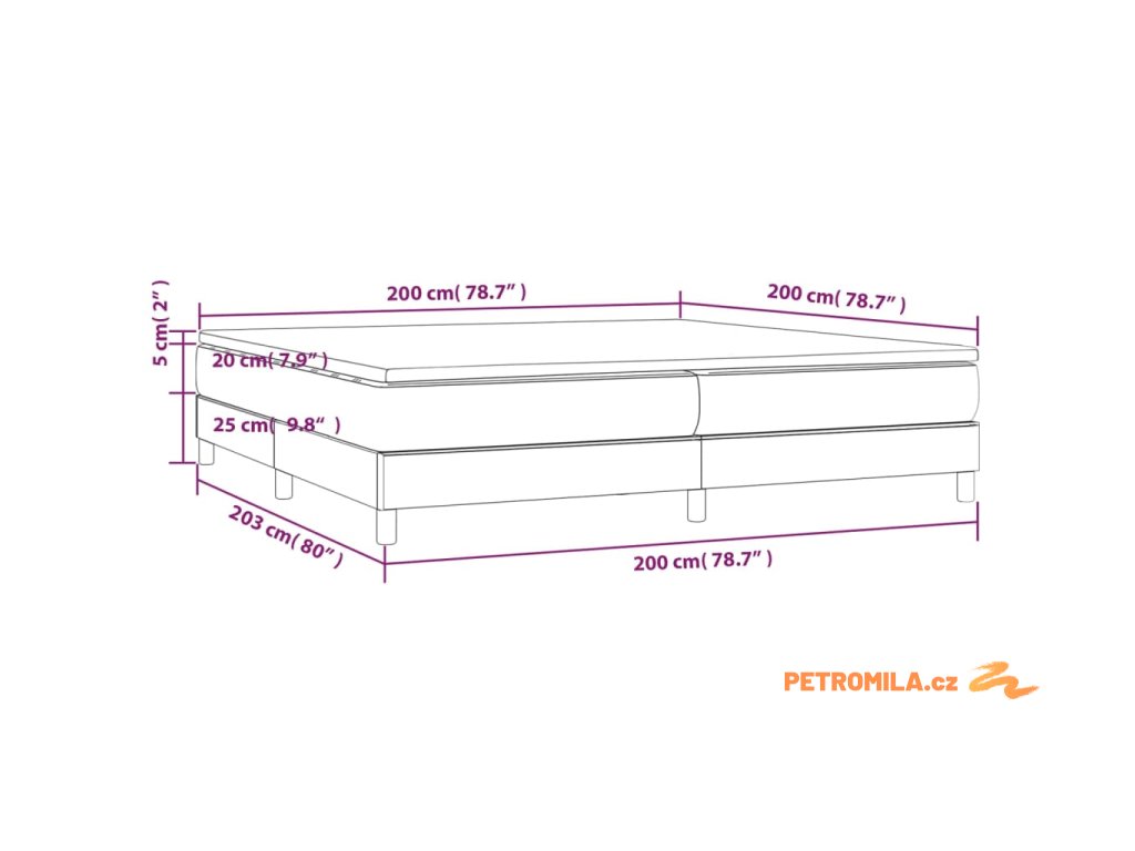 - Rozměry: 203 x 200 x 25 cm (D x Š x V)