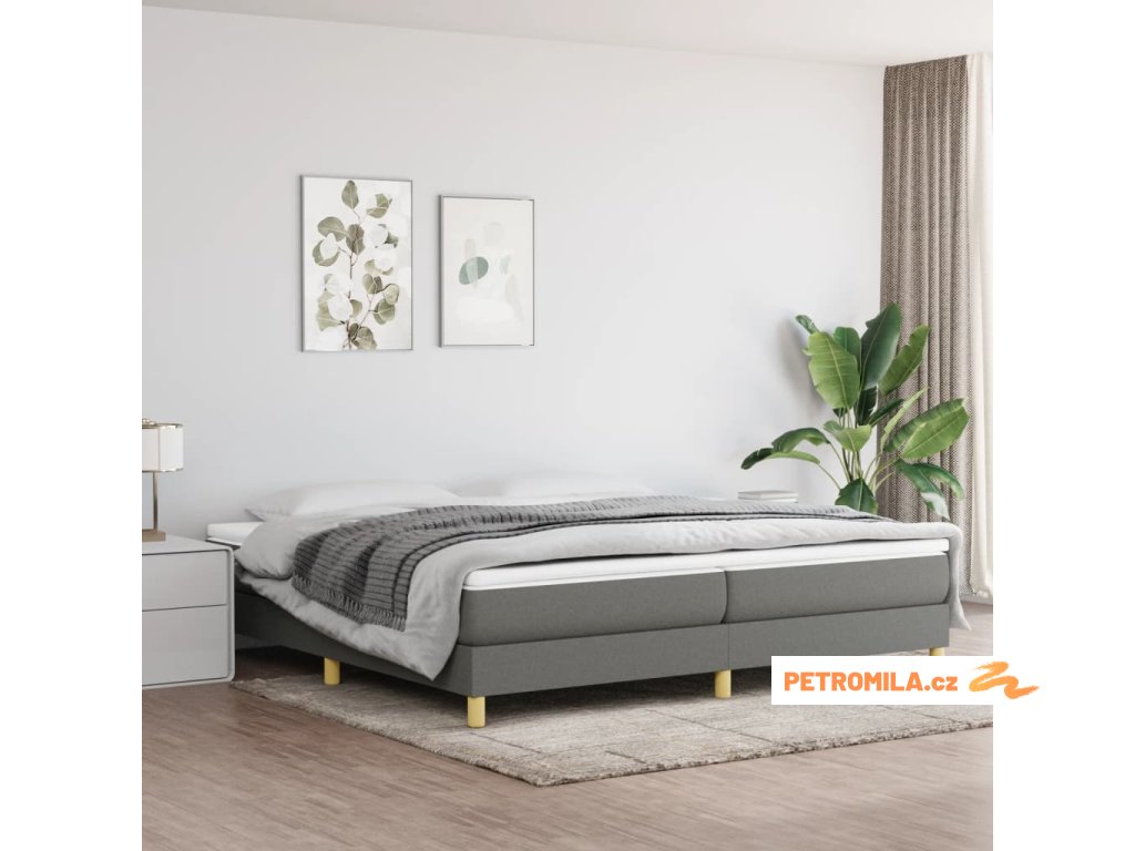 Box spring postel s matrací tmavě šedá 200x200 cm textil