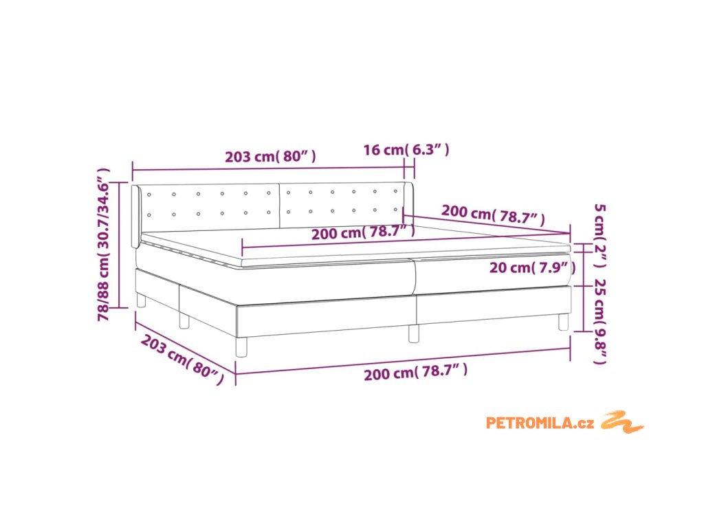 - Rozměry: 203 x 203 x 78/88 cm (D x Š x V)
