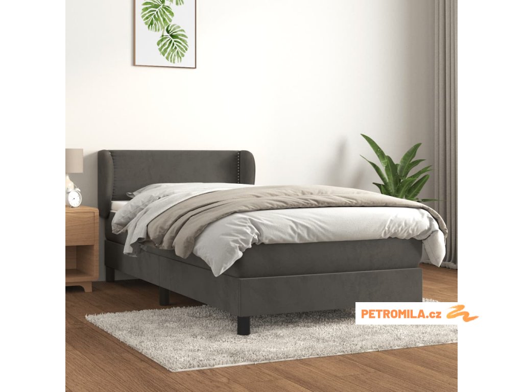 Box spring postel s matrací tmavě šedá 80 x 200 cm samet