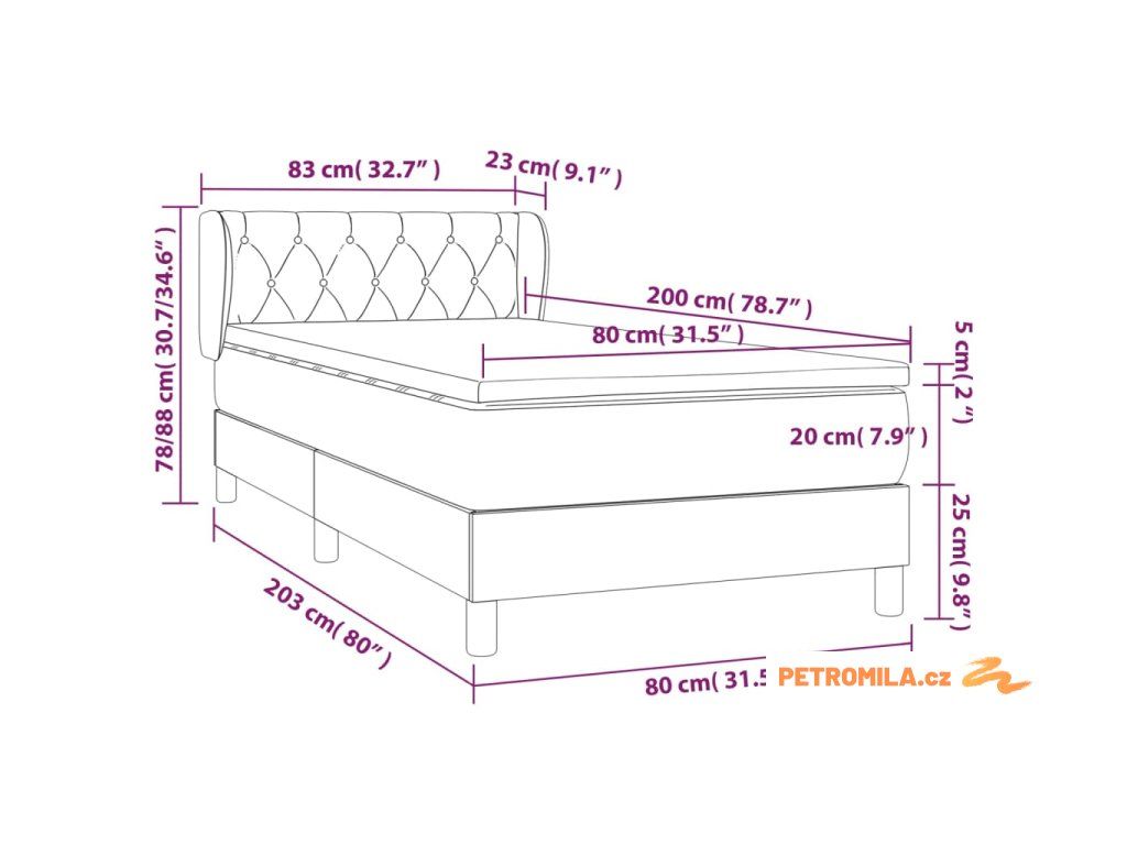 - Rozměry: 203 x 83 x 78/88 cm (D x Š x V)