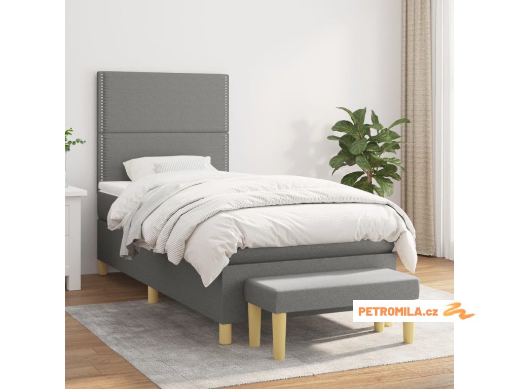 Box spring postel s matrací tmavě šedá 90x190 cm textil