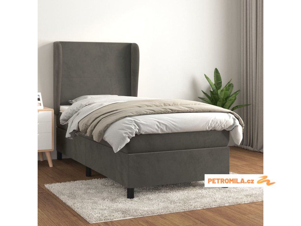 Box spring postel s matrací tmavě šedá 90x200 cm samet