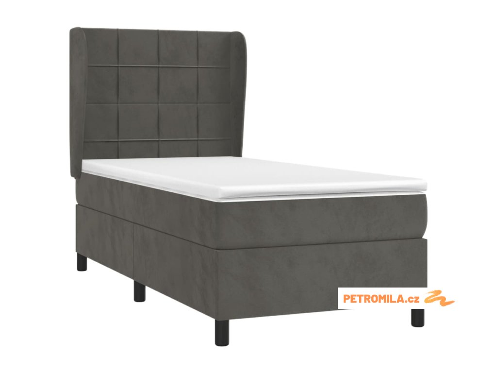 Box spring postel s matrací tmavě šedá 90x200 cm samet
